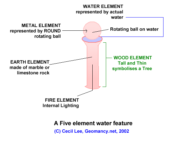 2.10 This is a sketch of a typical Feng Shui fountain (Qi enhancer) incorporating all Five elements:-