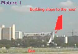 It is inauspicious to have a building sloping towards the sea. This means that whatever wealth owned will be `washed' to the sea. Picture one show a side profile of the building. Notice the sloping building as `highlighted in red'. Picture 2 and 3 are other profiles of the same building.